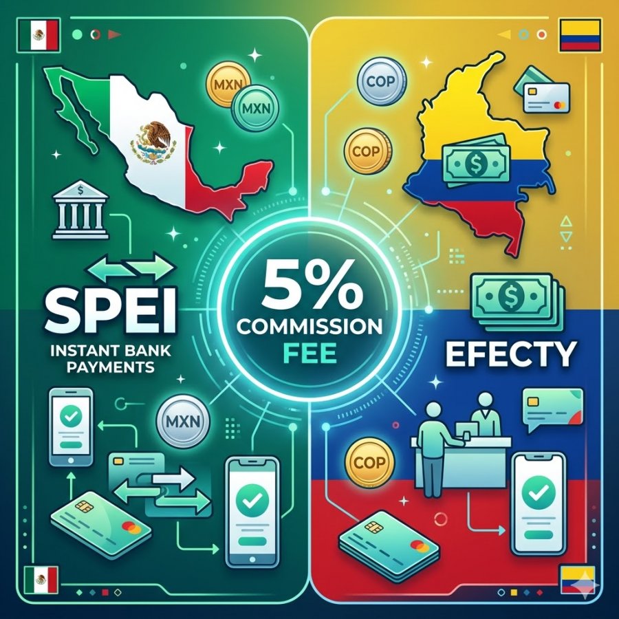 We are pleased to introduce new payment methods for Mexico and Colombia. Users in Mexico can now utilize SPEI for instant bank transfers. In Colombia, Efecty is now an option for cash payments. A 5% commission fee applies to both SPEI and Efecty. This update demonstrates our ongoing effort to support local users. We strive to provide the most convenient payment solutions worldwide.
